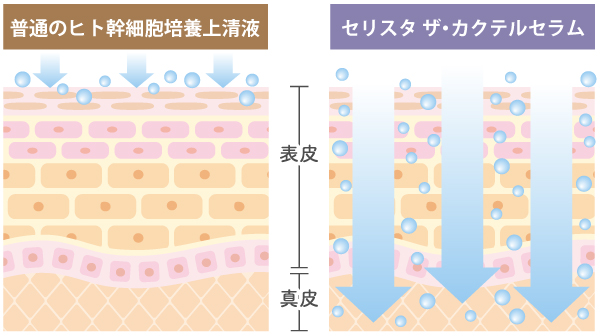 水分を安全に内部へ浸透させる「イオシア」は、ドラッグデリバリーシステムとしても優秀。ヒト幹細胞培養上清液を肌のすみずみまで素早く的確に送り届けます。